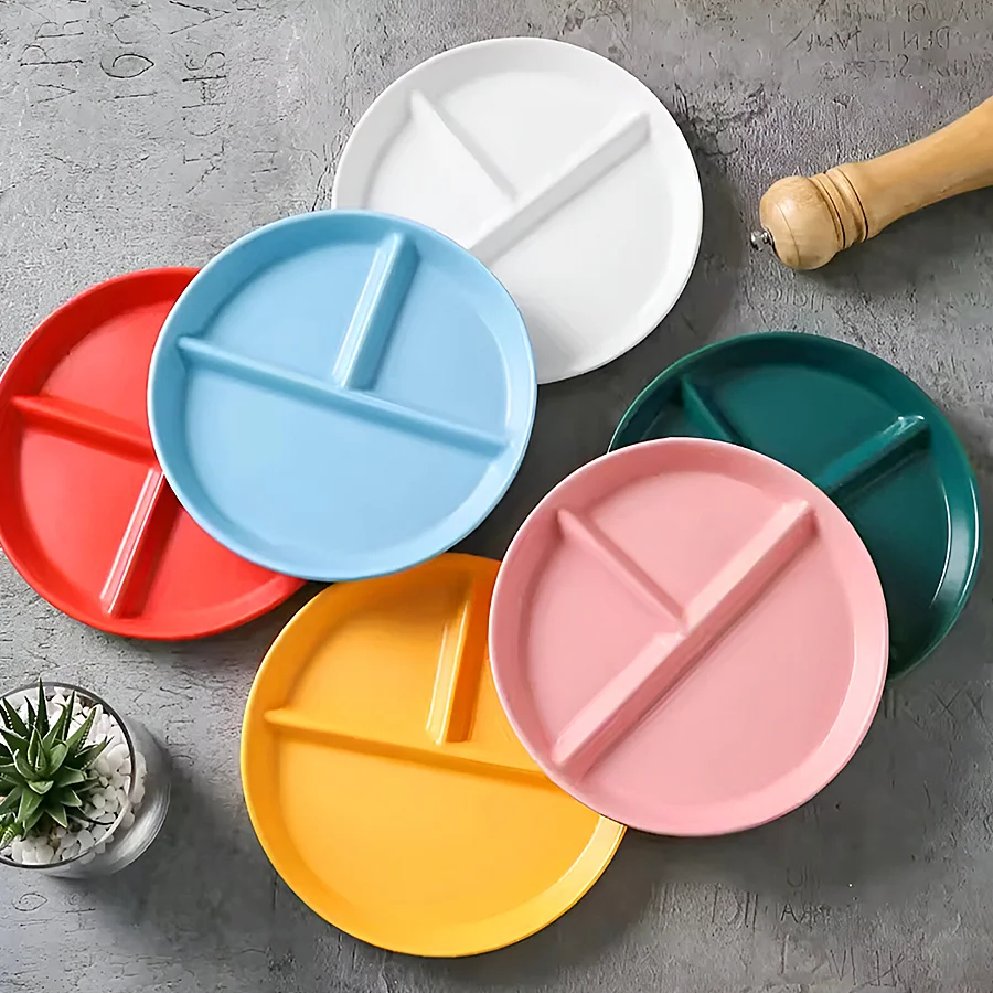 Each plate is made from premium, food-grade plastic that’s BPA-free, sturdy, and long-lasting. Its smooth, round design features Three Spacious Compartments that perfectly separate Main Courses, Sides, and Snacks. Whether you’re plating up pasta, veggies, or desserts, this section plate keeps everything in its place neat, tidy, and appetizing. Perfect for Home Kitchens, School Lunches, Offices, or Picnics, This Multi Compartment Plate combines practicality with a modern touch. It’s lightweight yet durable, making it easy to carry and Ideal for both Kids and Adults. The vibrant color range adds a pop of fun to your table while matching any kitchen décor.