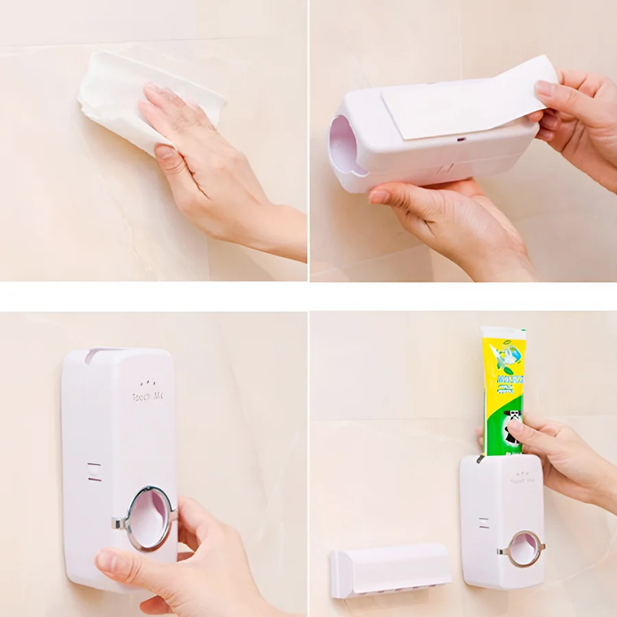Made from high-quality, BPA-free ABS plastic, this set is built to last. It features a Five Slot Toothbrush Holder that accommodates the whole family, along with a protective dust cover to maintain hygiene between uses. The Wall Mount Design uses strong adhesive backing no drilling required making installation quick and damage free. Perfect for busy homes, shared bathrooms, or minimalist spaces, this automatic toothpaste dispenser with holder helps you make the most of your countertop area. Its clean, modern look complements any décor style while keeping essentials within easy reach. Easy to clean and maintain, This set is a thoughtful upgrade for anyone who values convenience and cleanliness. Whether you’re refreshing your own space or gifting it to someone setting up a new home, This simple yet functional accessory adds both comfort and charm to your daily routine.