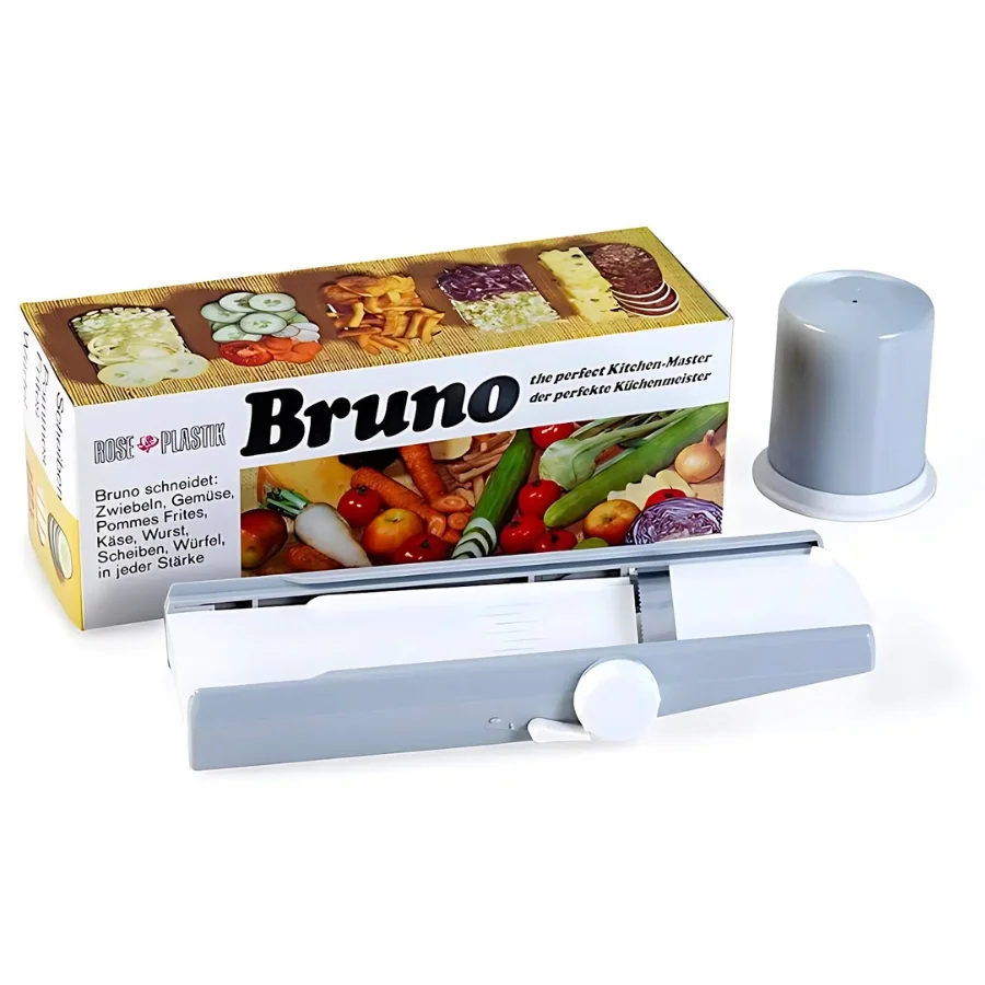 Bring speed, precision, and convenience to your kitchen with The Bruno Vegetable Cutter & Slicer, Your all in one Kitchen Master Slicer. Perfect for everyday Cooking, This Multi Function Tool helps you Slice, Dice, Julienne, and Shred Vegetables, Fruits, Cheese, Sausages, and even Potatoes for fries all with one compact design. Equipped with Razor Sharp Blades, The Bruno Slicer cuts Onions, Cucumbers, or Cheese effortlessly, ensuring clean, even slices every time. With its Adjustable Thickness Slicer Setting, You can easily switch between thin slices for salads, thick cuts for chips, or uniform cubes for meal prep. This makes it the best kitchen slicer for vegetables, cheese, and meat in busy households.