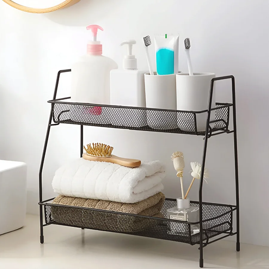 Keep your home beautifully organized with the Multipurpose 2-Tier Metal Storage Rack, Designed for smart and stylish storage in every room. Whether you need a Kitchen Rack for spices and jars, a Bathroom Shelf for toiletries, or a Compact Countertop Organizer for skincare and accessories, This rack does it all with ease.